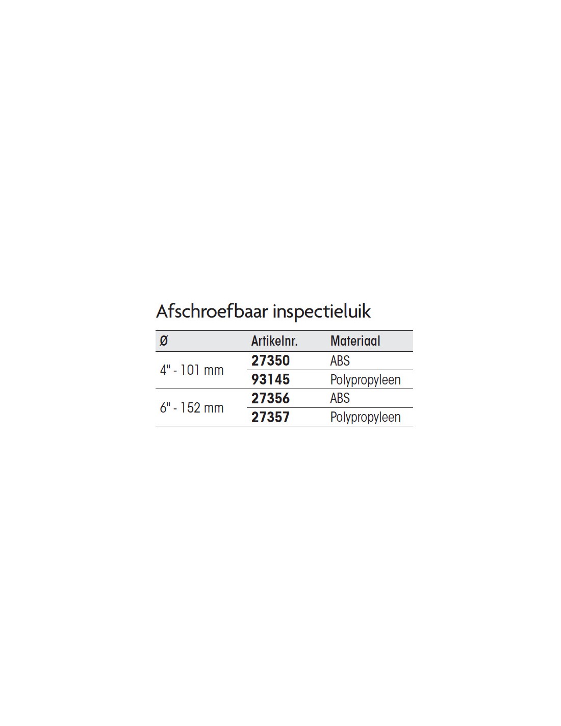 Afschroefbaar inspectieluik div. modellen