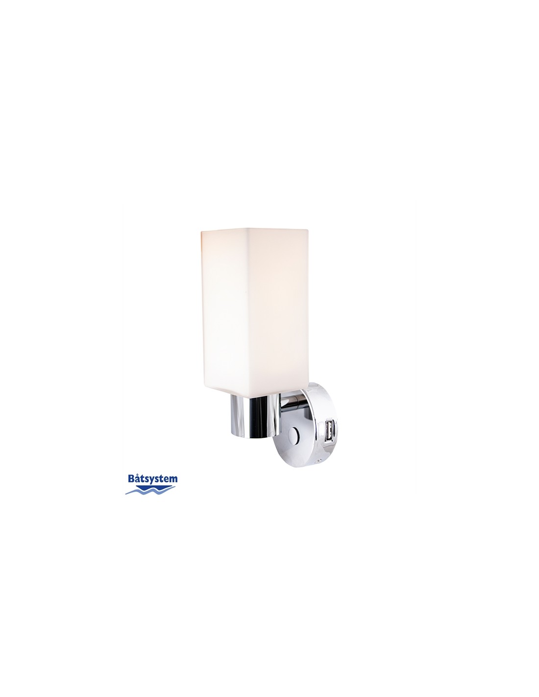 Elegante chromen wandlamp met rechthoekig opaal glas. Ingebouwde dimmer en geheugenfunctie zodat de lichtsterkte hetzelfde is als wanneer de lamp via de touch bediening uitgezet werd. Het ontwerp is geïnspireerd op hedendaagse interieur ontwerpen, stijlvol met een moderne look. Ingebouwde USB aansluiting met een 2 ampère uitgang voor het opladen van een smartphone of tablet. 12 Volt, 3 Watt, 0‐270 lumen, Warmwit 3200K, IP21
