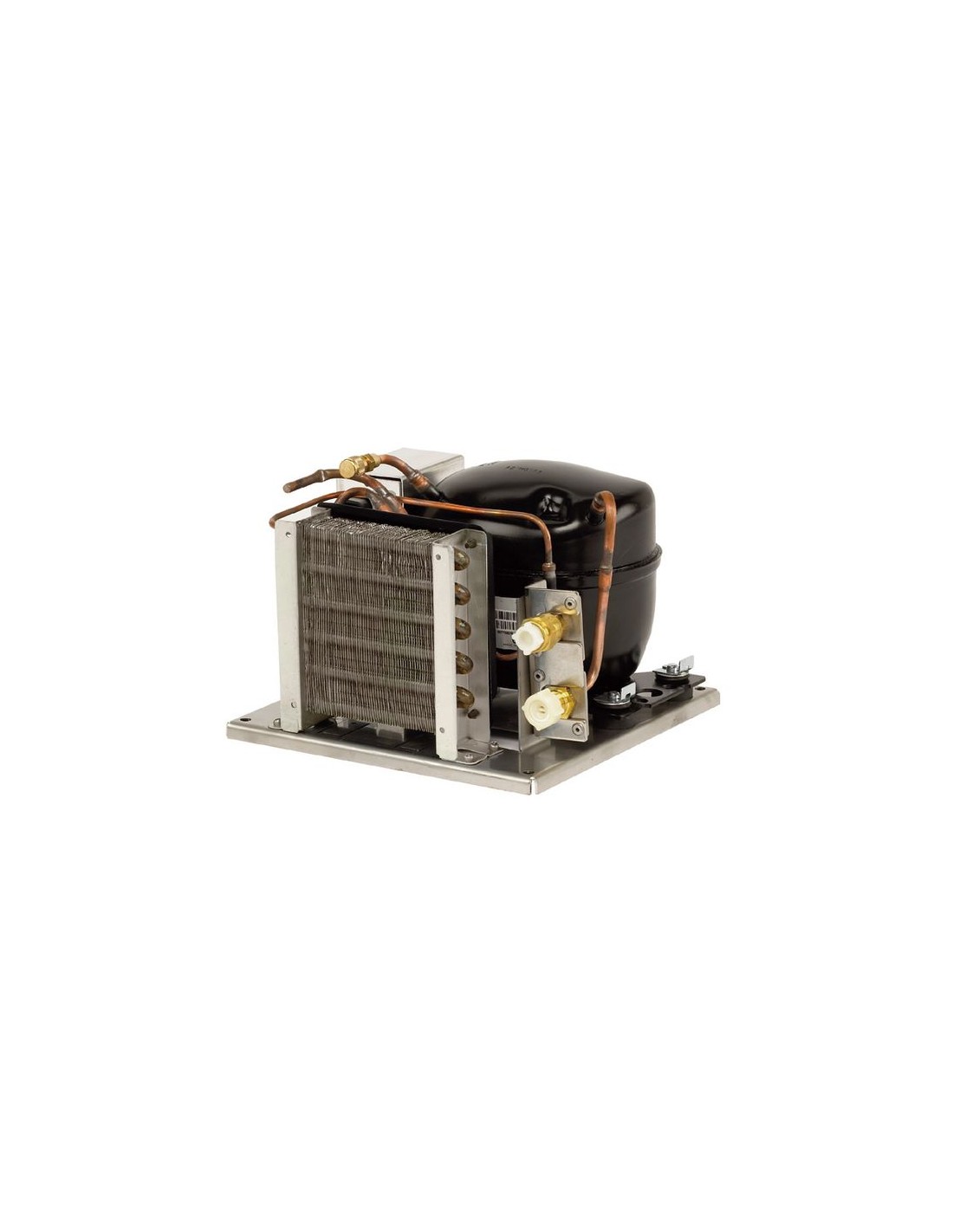 Met Danfoss BD 35 F compressor. Danfoss BD 35 F compressor past zich automatisch aan de vermogenseisen van de gebruikte Coolmatic verdamper aan. Buitengewoon hoge opbrengst, superstil, probleemloze aansluiting op 12/24 Volt met automatische omschakeling. Opgenomen vermogen: 45 tot 60 Watt, afhankelijk van het verdampertype. Met zelfsluitende ventielkoppeling.