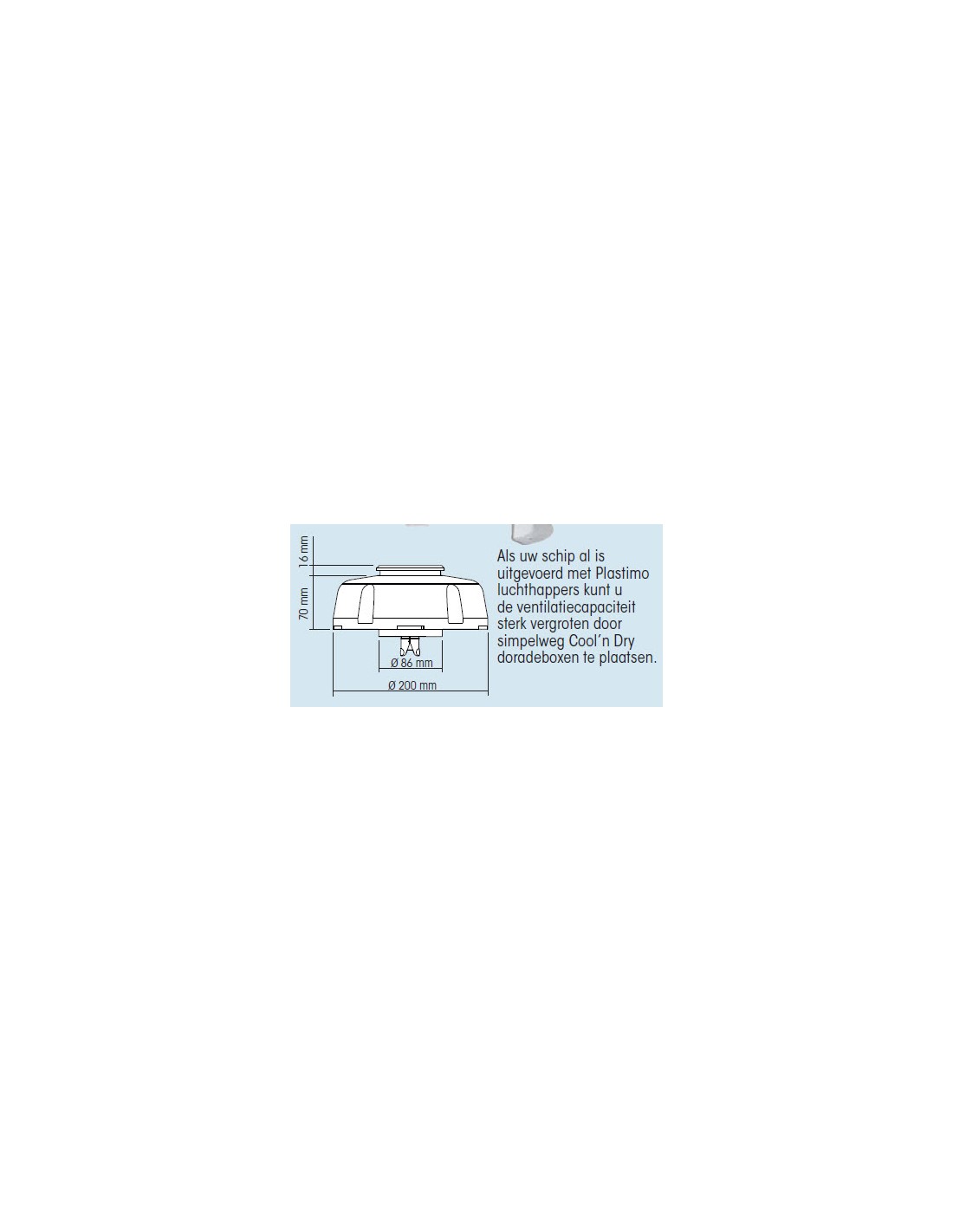 Een perfecte ventilatie aan boord is niet alleen onontbeerlijk voor uw comfort; het draagt tevens bij aan de levensduur van de uitrusting, zoals kussens, kleding, reddingvesten enz., die vaak door schimmel en vocht worden aangetast. Hoe kan men verzekerd zijn van een permanente ventilatie zonder het gevaar te lopen van binnenkomend water? De "Cool'n Dry" dorade box is hierop het antwoord: het exclusieve gepatenteerde systeem biedt een constante ventilatie in uw schip, zelfs in zeer slechte weersomstandigheden.