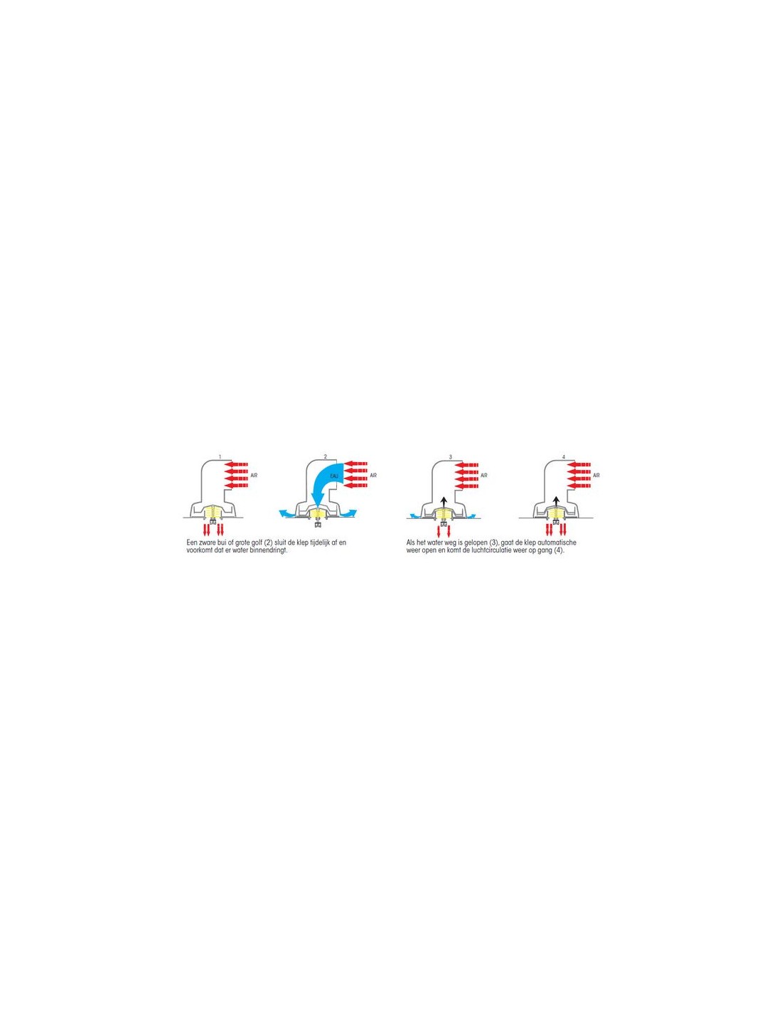 - Er komt geen water binnen, dankzij het exclusieve afsluitsysteem, dat automatisch sluit in het geval van zware regenval of zelfs als er een golf water over komt.