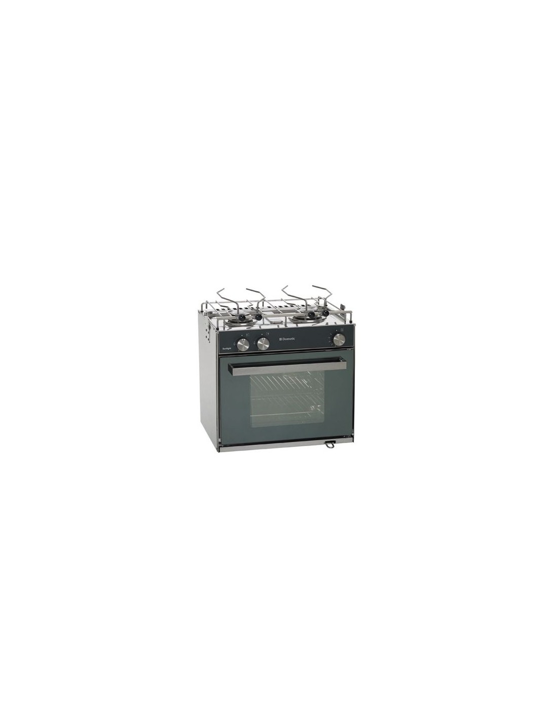 Gasoven met 2-pits kookplaat, voorzien van thermostaat, interieur verlichting, beveiligd ontstekings systeem en panhouder.