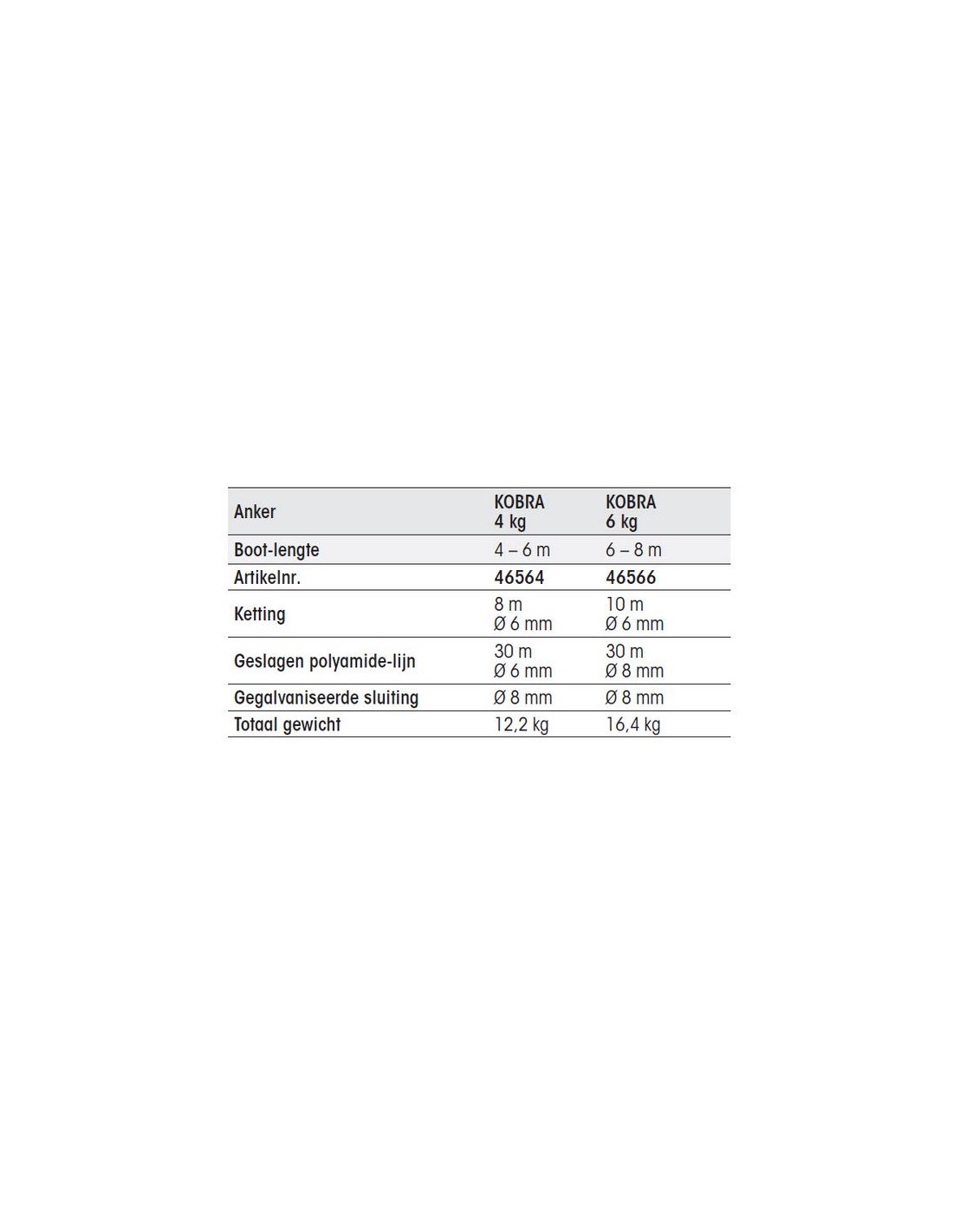 Kobra ankerpakket 4 kg of 6 kg