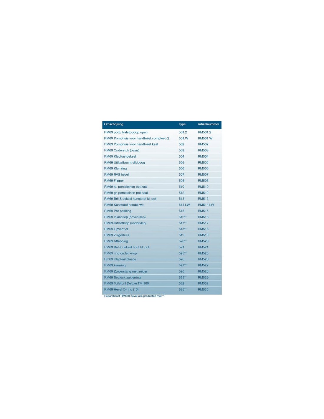 RM69 onderdelen Marine handtoilet nr.514 RM69 Kunststof hendel wit (STD) 001093721 € 17,25 In winkelwagen