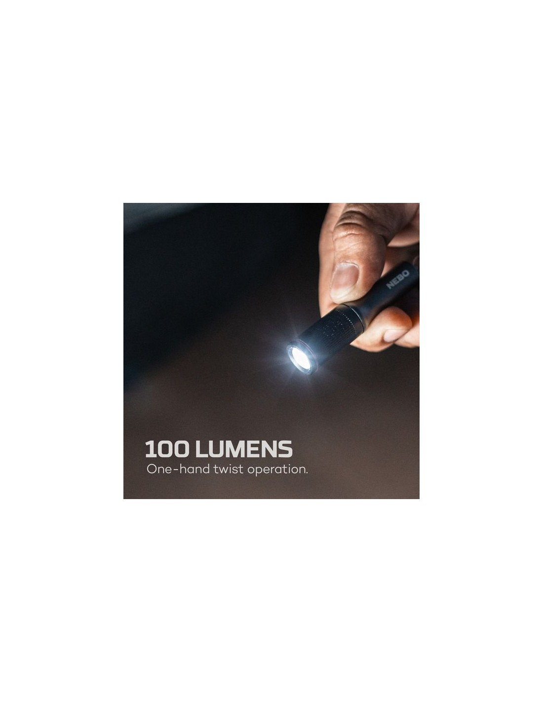 Deze lamp van 100 lumen heeft een draaibare functie voor eenvoudige bediening met één hand en een sleutelhangerbevestiging voor handige draagbaarheid.