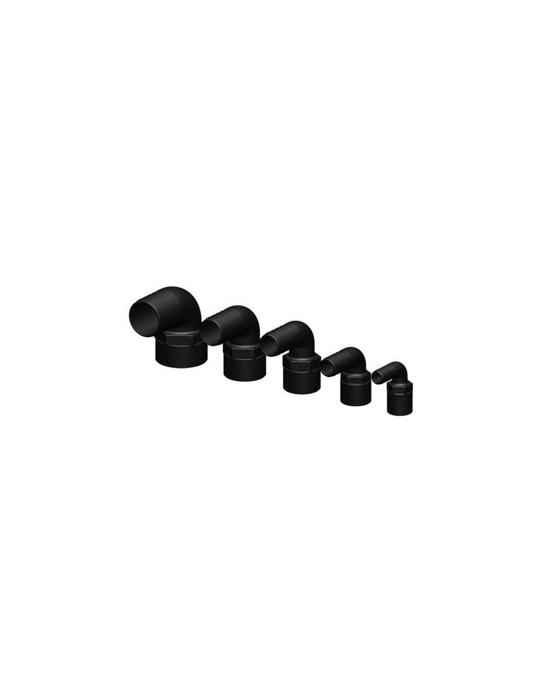 Slangtule 90° binnendraad zwart div. maten