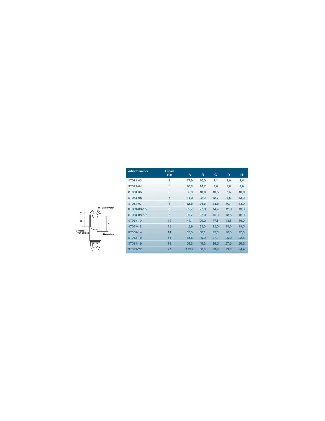 Sta-Lok oog Metrisch draad RVS AISI 316