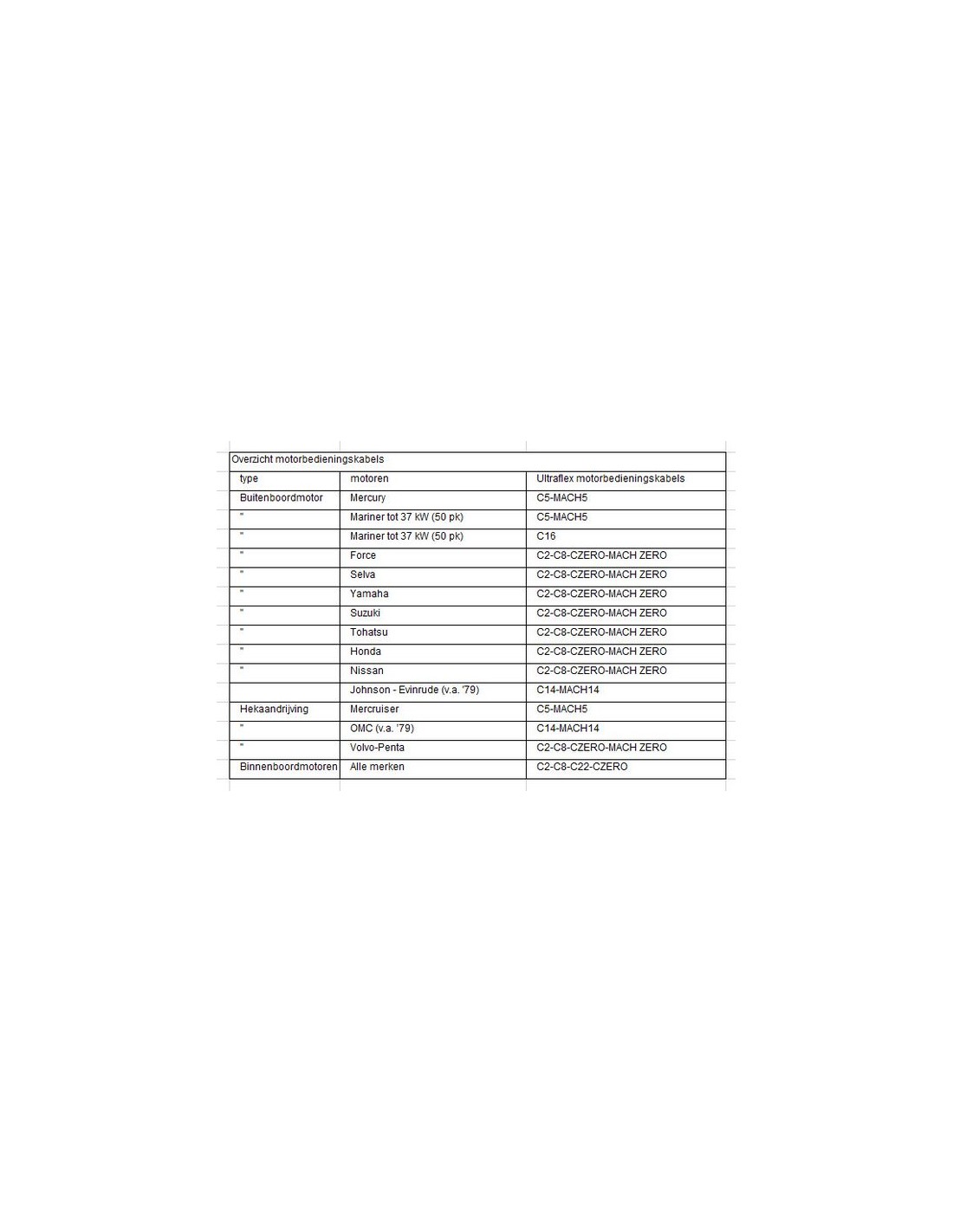 Klik voor algemene informatie over motorbediengskabels op de foto's.