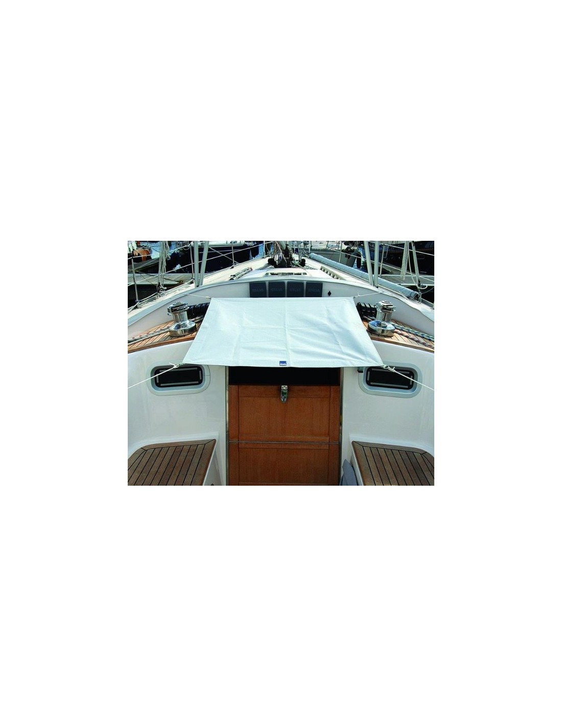 Dit universele zeil kan gebruikt worden boven een luik of kajuitingang ter bescherming tegen de regen of als verduistering.