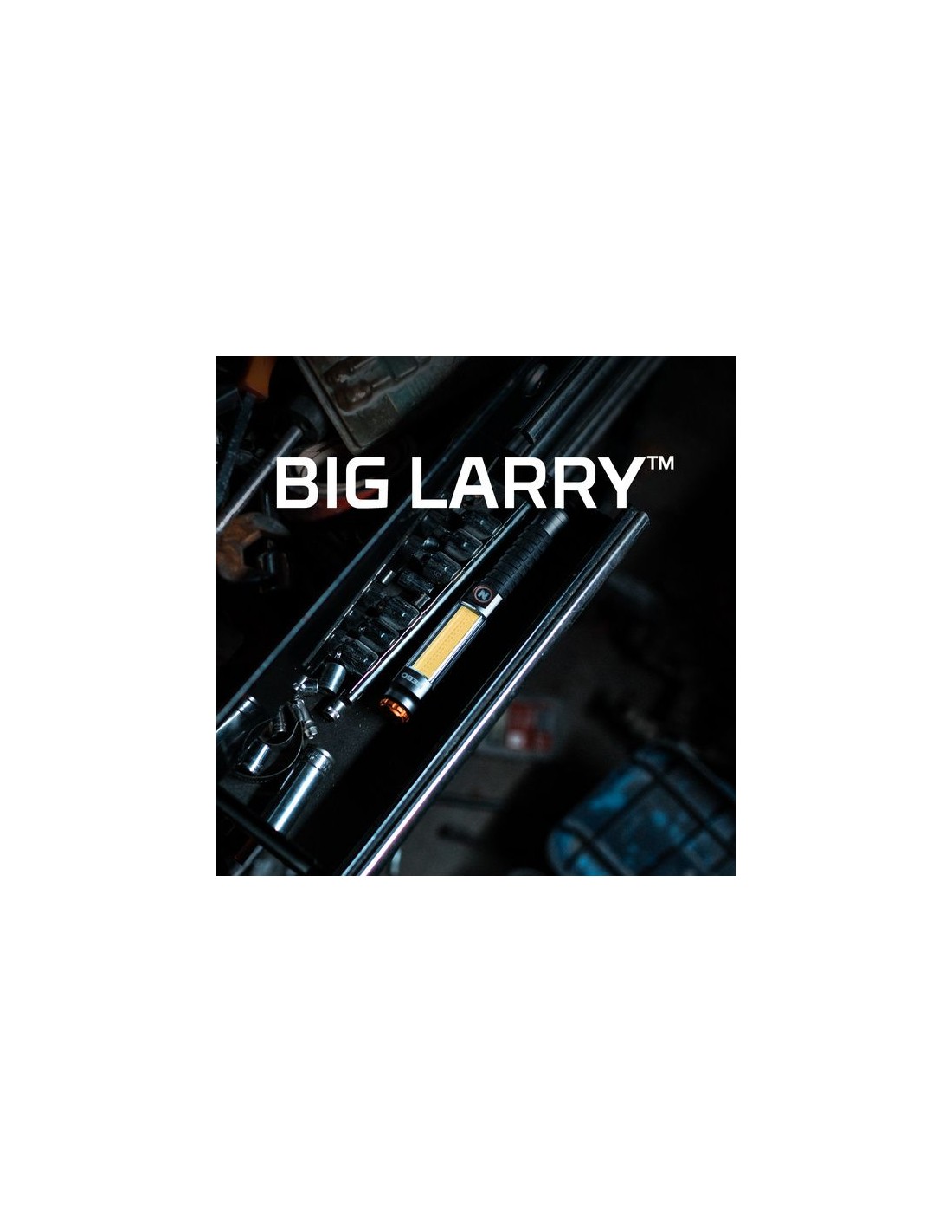 De nieuwe en verbeterde BIG Larry produceert 600 lumen met de C-O-B werklamp en 220 lumen met de toplicht.